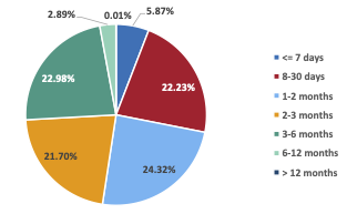 Decomposition of the maturity profile of the nominal outstanding FX hedging contracts in the Swedish market. 2020 averages for the remaining maturity calculated over the end-of- month values.